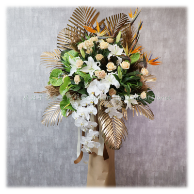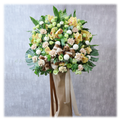 請填寫相應之內容- 上款:開幕店名/榮任者職稱及姓名/亡者姓名。 中款:賀詞/輓詞,如無指定將隨機挑選。 下款:送花人署名。