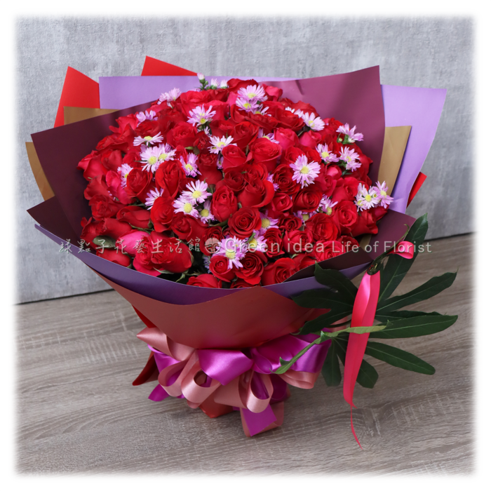I104 紅桃系九九玫瑰花束