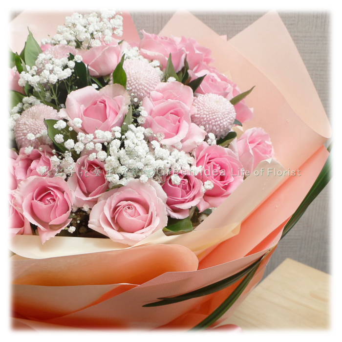 玫瑰花、滿天星、乒乓菊。