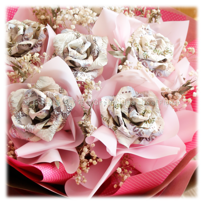 *沒有破壞鈔票本體,打開來後都能使用,但做成花束觀賞價值比較高,沒有預設會把它拆開使用。