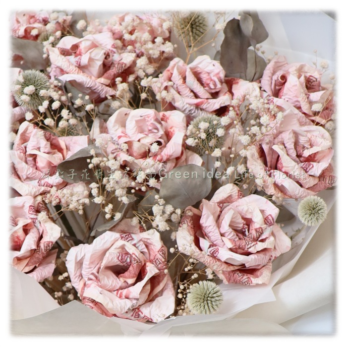 *沒有破壞鈔票本體,打開來後都能使用,但做成花束觀賞價值比較高,沒有預設會把它拆開使用。