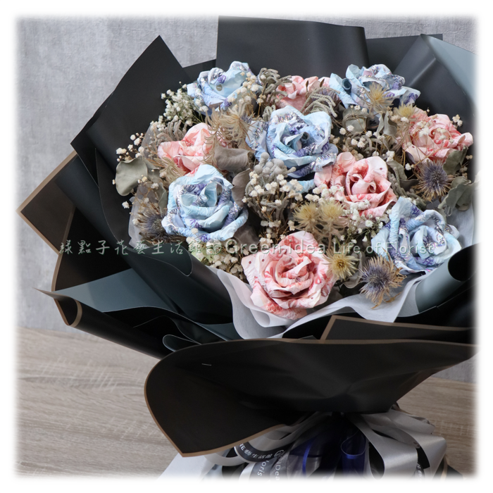 千元鈔25張、百元鈔25張、滿天星、乾燥花材。