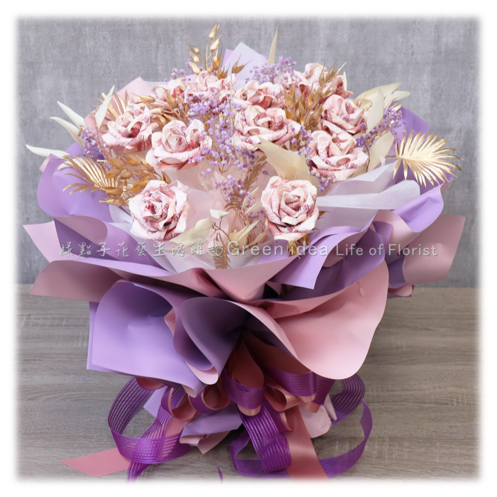 H122 華麗金紫金錢玫瑰花束