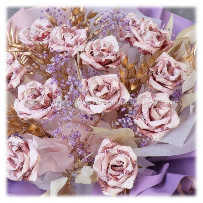 百元鈔60張、滿天星、乾燥花材。