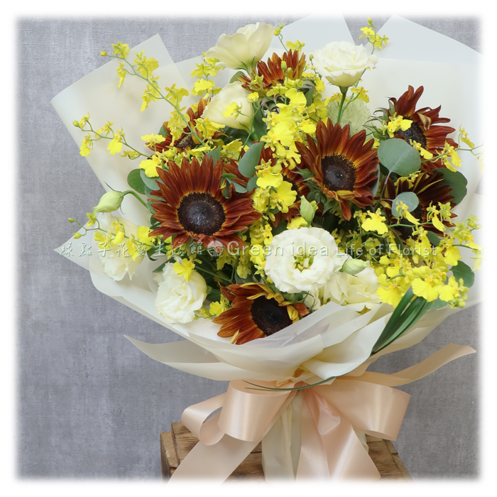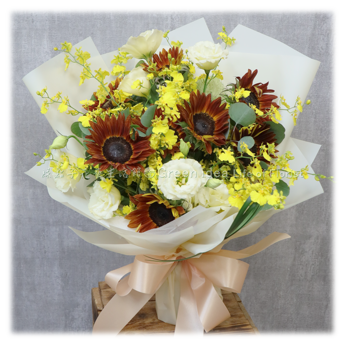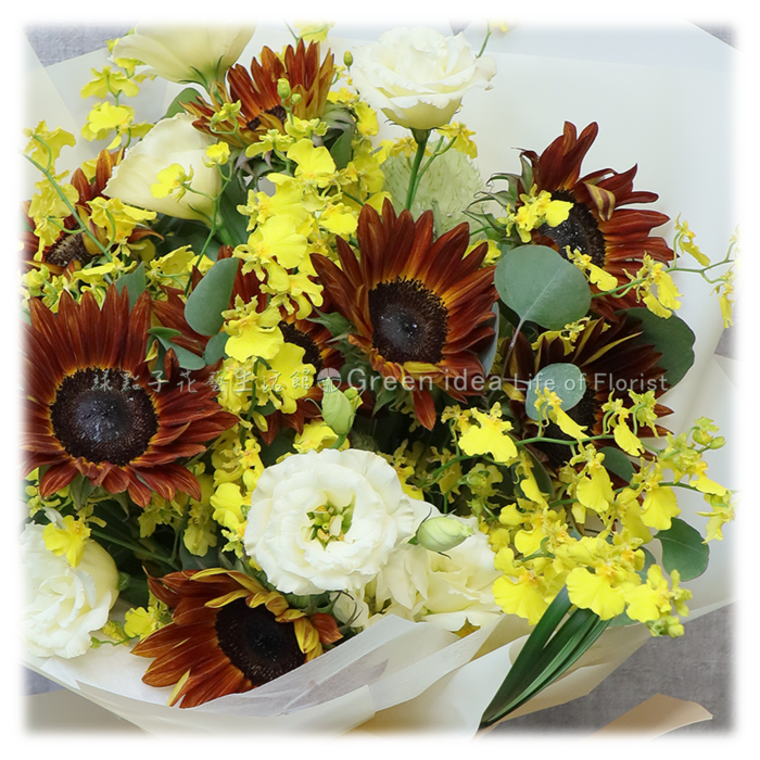 向日葵、桔梗、文心蘭。
